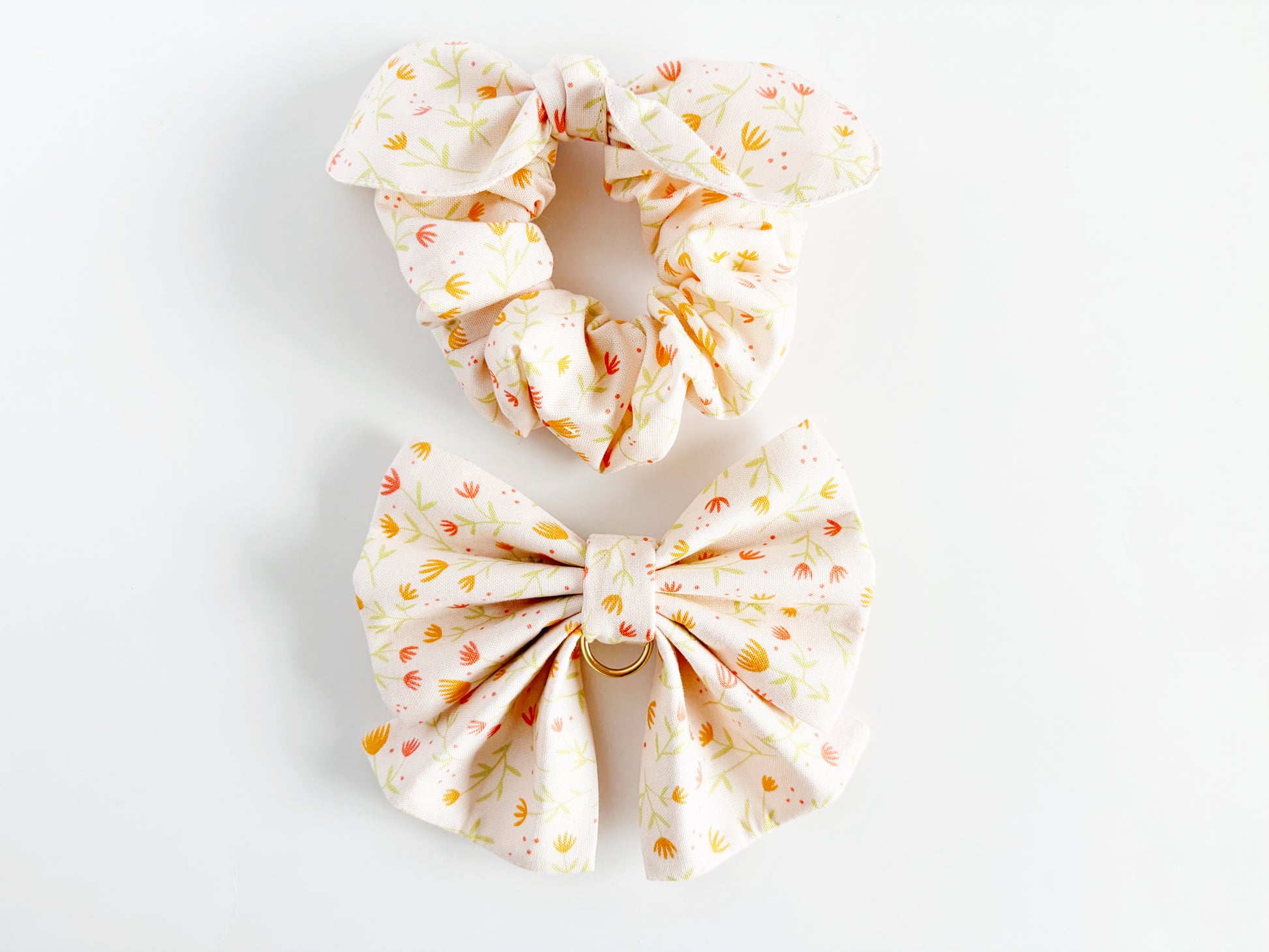 This small bowtie and scrunchie set is part of the first ever Treasure Box Collection, where each set is one-of-one, meaning it is exclusive and one-of-a-kind at Lab & Pals. The print will not be used again in any other Lab & Pals products, so you and your dog will have the only set ever.