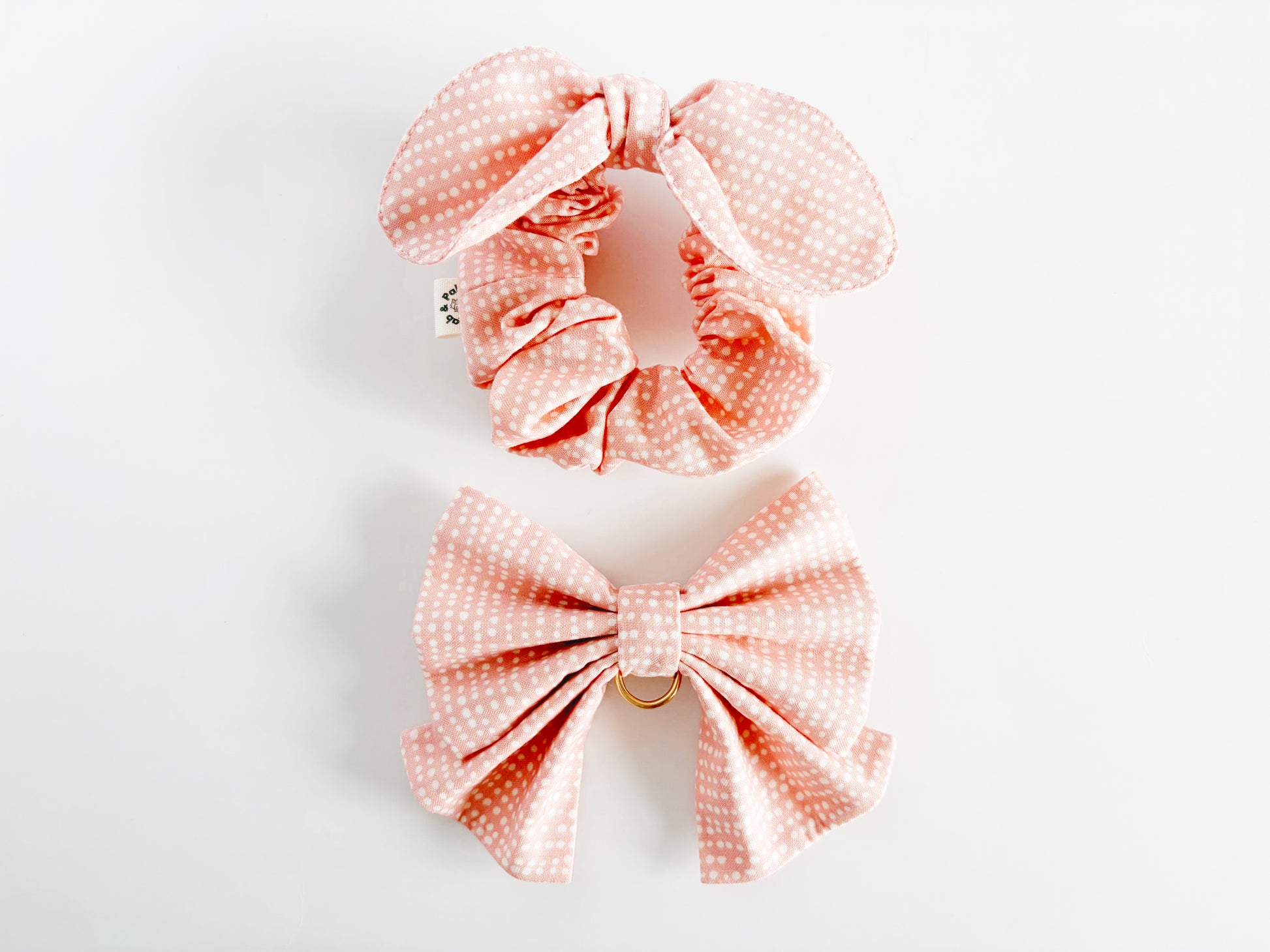 This small bowtie and scrunchie set is part of the first ever Treasure Box Collection, where each set is one-of-one, meaning it is exclusive and one-of-a-kind at Lab & Pals. The print will not be used again in any other Lab & Pals products, so you and your dog will have the only set ever.