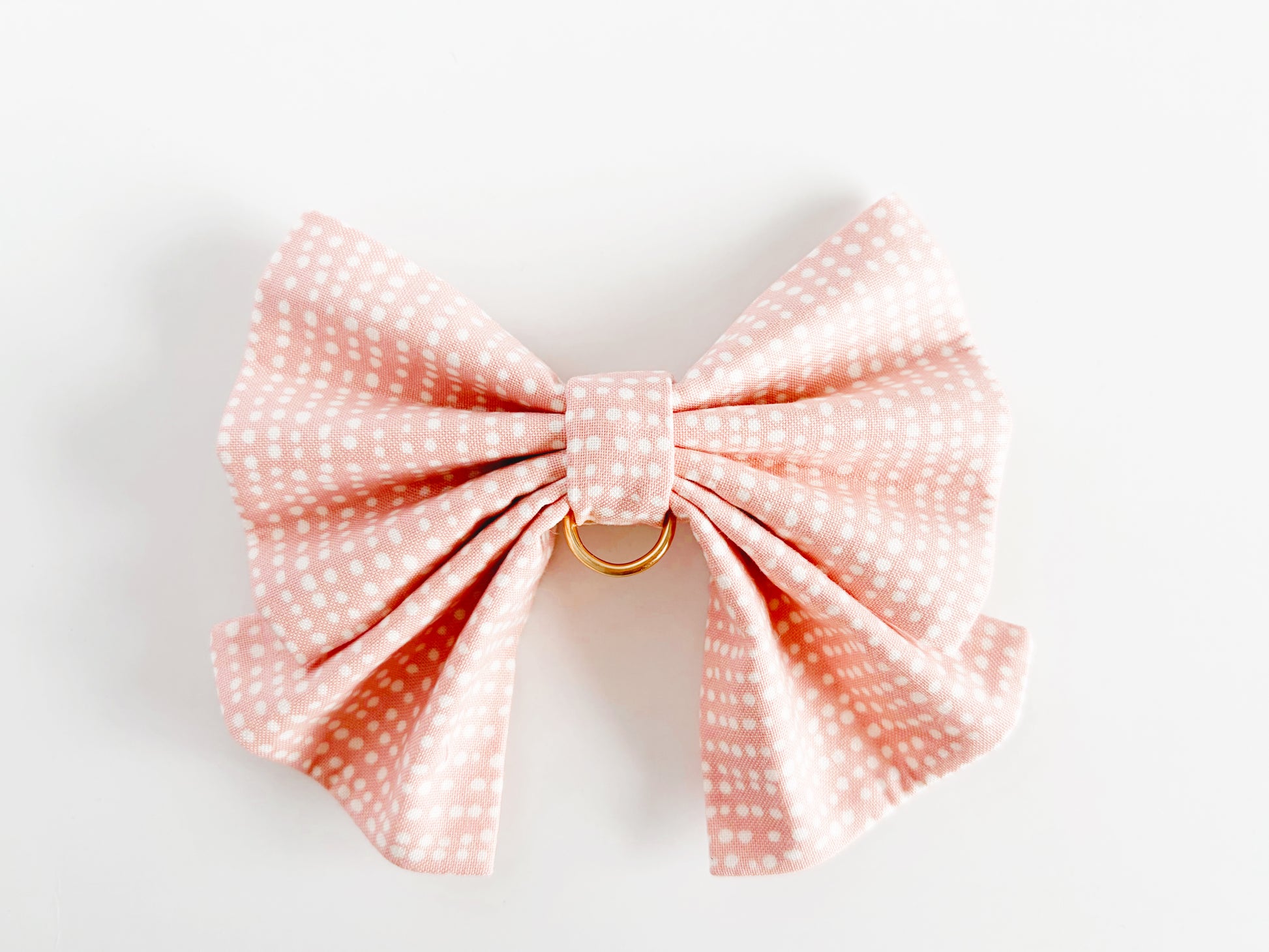 Each dog bowtie is made with 100% cotton and interfacing to hold its shape. There are two elastic bands on the back of the bowtie that are used to secure it onto a pet collar or harness.